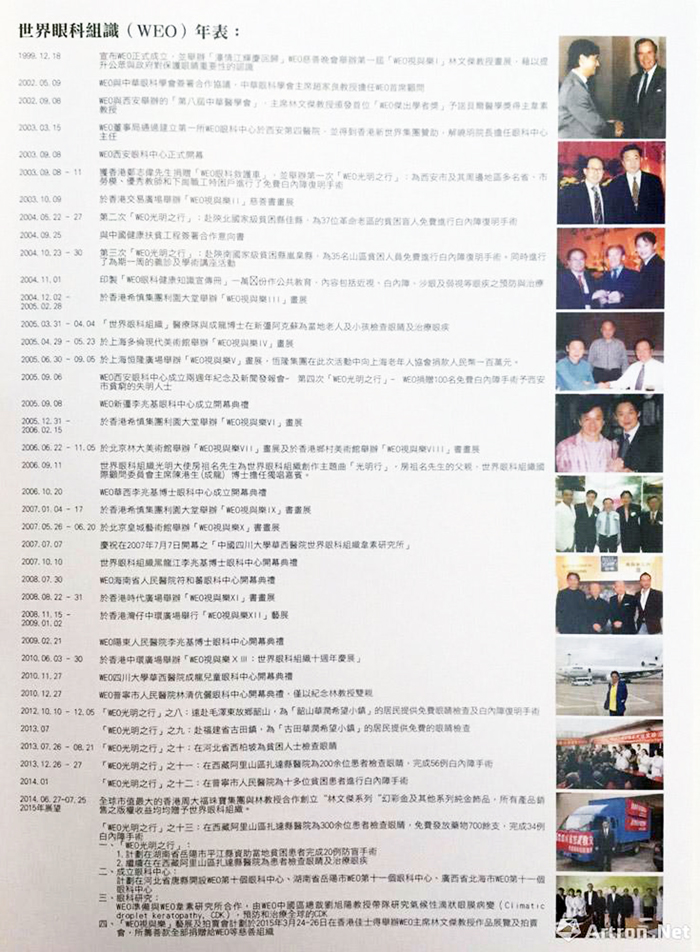 l 2004年10月23日至30日举办「WEO光明之行」之三:赴陕南国家级贫困县嵐臬县,为35位山区贫困人员免费进行白内障复明手术。同时进行了为期一周的义诊及学术讲座活动。