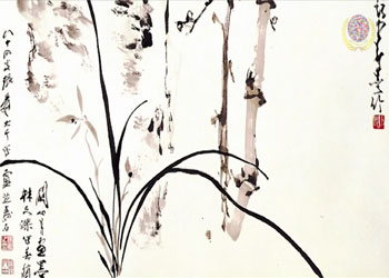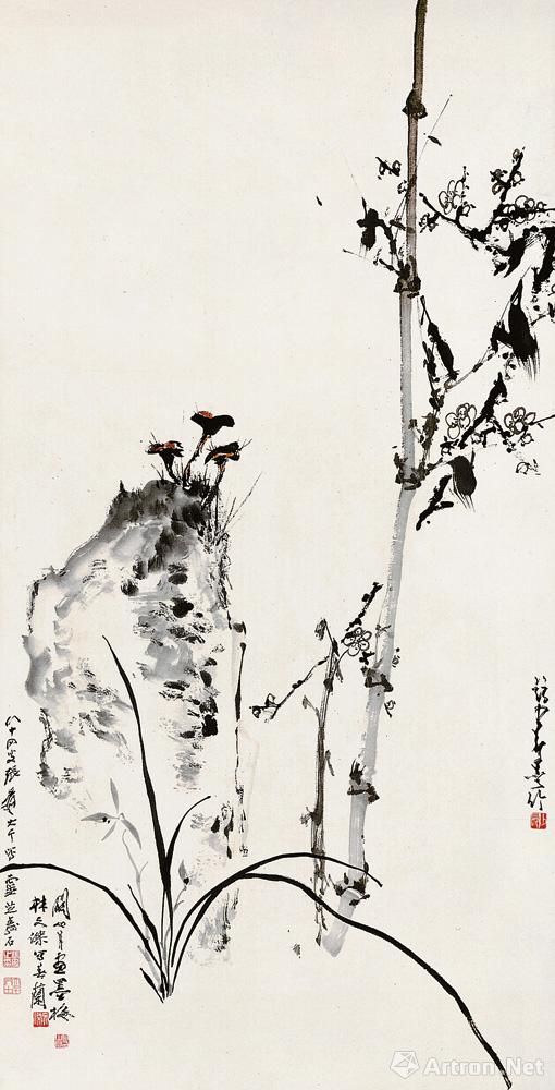 1983年林文傑教授、张大千、赵少昂与关山月合作创作了《梅兰竹芝》畄下传世珍贵的墨宝。